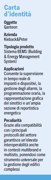In questo contesto si inserisce Qanteon, il sistema BEMS (Building & Energy Management System) sviluppato da Kieback&Peter, che integra in un’unica piattaforma le funzioni operative di un sistema di supervisione e le analisi avanzate tipiche dell’Energy Management System (EMS).